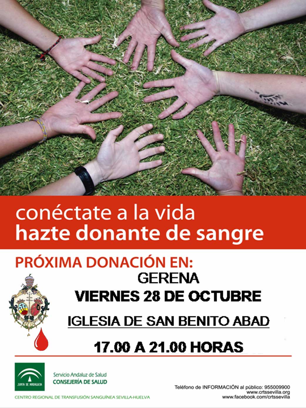22/10/2011 CAMPAÑA DE DONACIÓN DE SANGRE EN LA IGLESIA DE SAN BENITO ABAD VIERNES 28 DE OCTUBRE De 17 a 21 horas de la tarde |