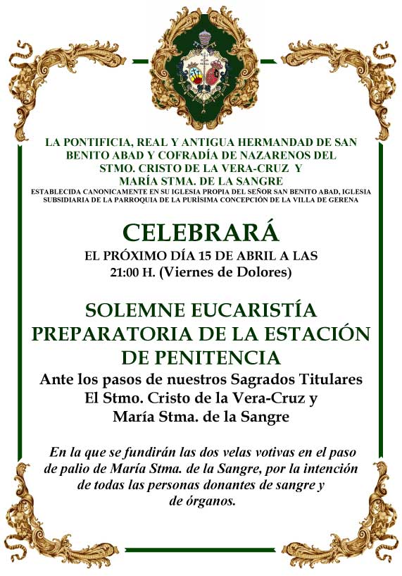 11/04/2011 SOLEMNE EUCARÍSTIA PREPARATORIA DE LA ESTACIÓN DE PENITENCIA y fundición de las velas votivas en el paso de palio de la Virgen de la Sangre |