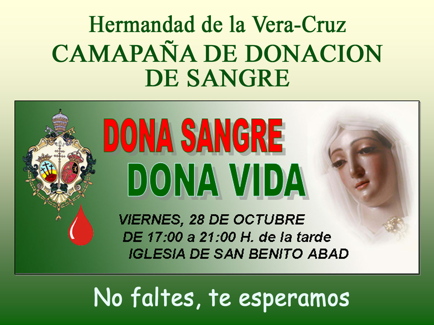 CAMPAÑA DE DONACION DE SANGRE EN LA IGLESIA DE SAN BENITO, VIERNES 28 DE OCTUBRE DE 17:00 A 21:00 H.
