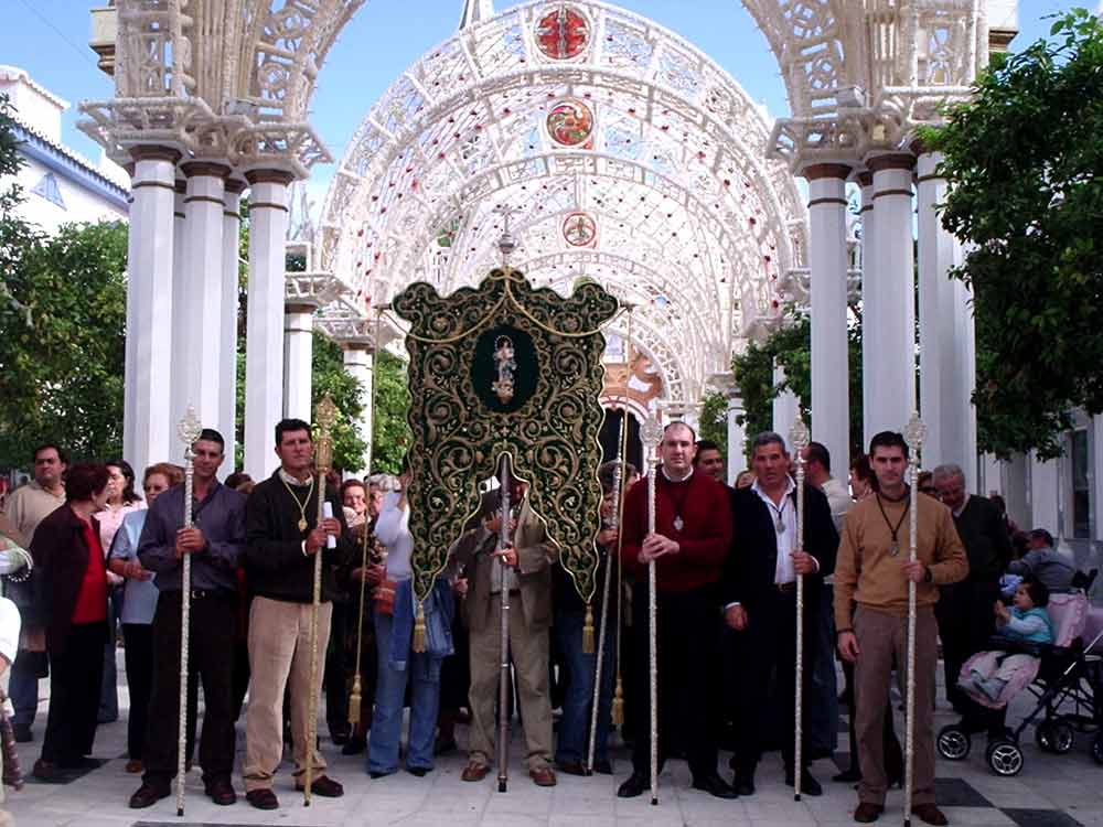 A las 10:00 h. tendrá lugar la celebración de la Eucaristía ante la Patrona de Almonte, que será oficiada por nuestro cura Párroco D. José Salguero Roldán y cantada por el coro "Aires de Gerena".